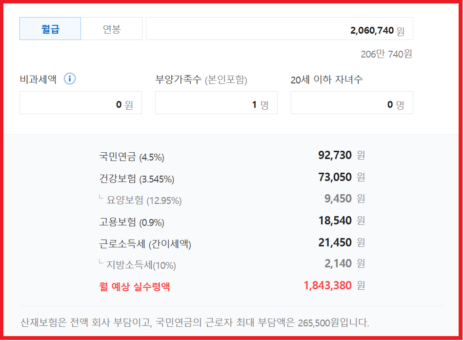 = 월 예상 실수령액 1,843,380원(약 185만원 전후 예상)