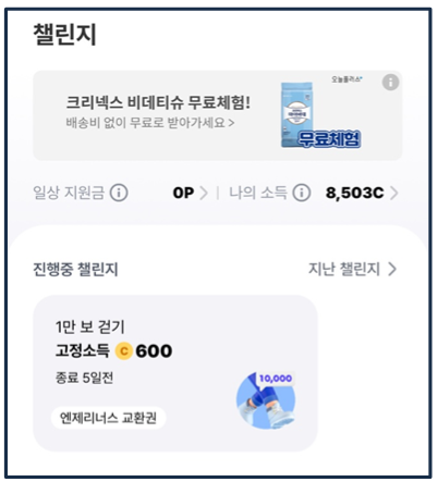 원하는 챌린지 도전을 하면, 진행 중 챌린지에서 현재 내가 도전하고 있는 챌린지를 확인할 수 있습니다.