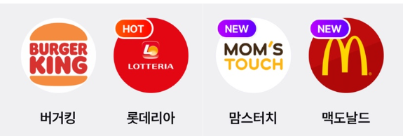 버거킹/ 롯데리아/ 맘터치/ 맥도날드