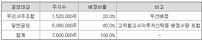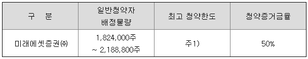 최소청약수량 : 20주, 최소청약증거금 350,000원