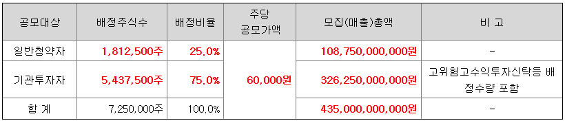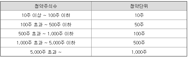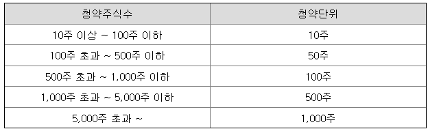 ■ 한국투자증권 일반청약자 배정물량 및 청약단위