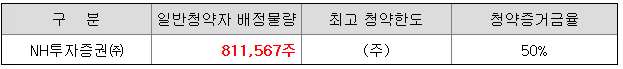 ■ NH투자증권 일반청약자 배정물량 및 청약단위