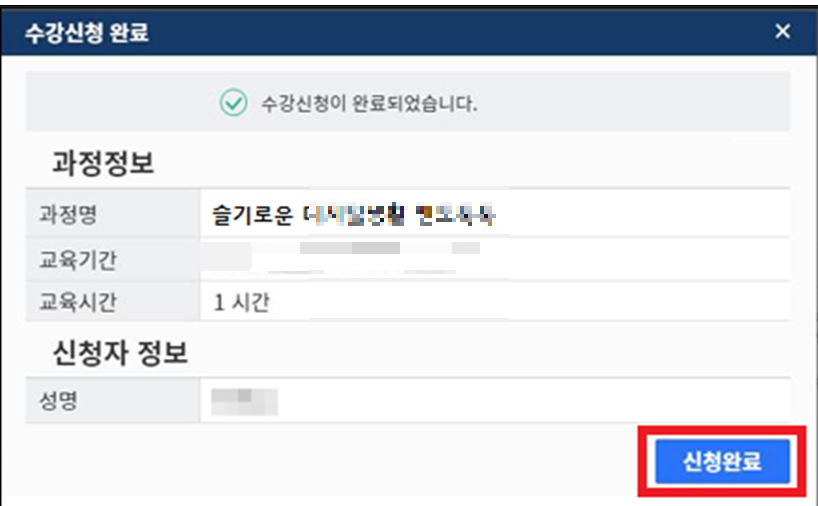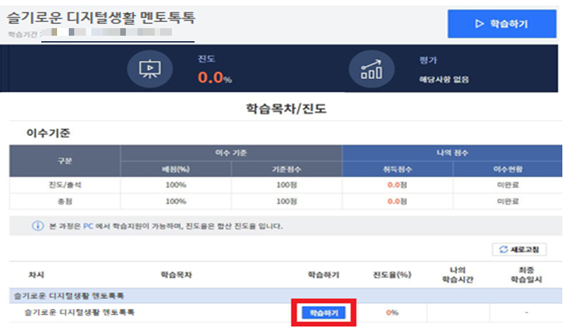 ■ 동영상 교육 수강 종료 후 진도 100%가 되었는지를 반드시 확인