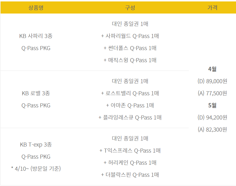 ■ KB Pay Q-Pass 패키지 - KB Pay(앱카드)결제 시 이용권 + Q-Pass 3종 우대