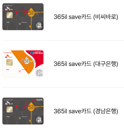 365il save카드(비씨바로)/ 365il save카드(대구은행)/ 365il save카드(경남은행)