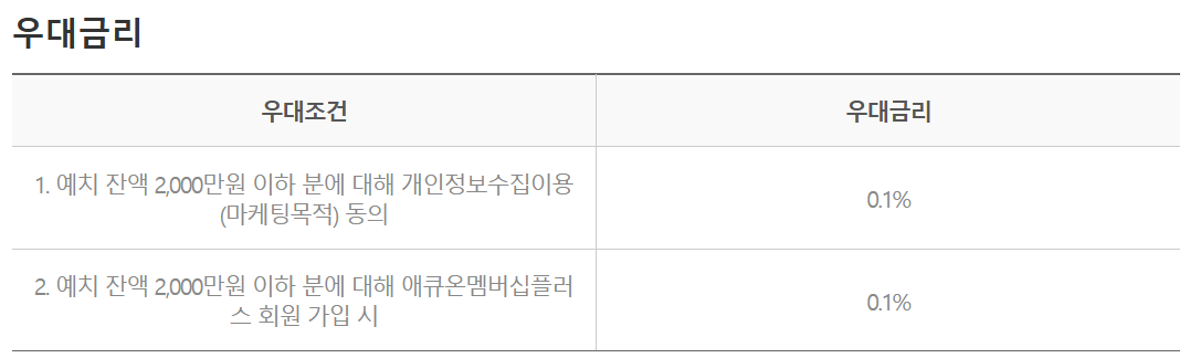 * 주의) 애큐온 정보 받기, 가입기간 중 마케팅 동의 철회 후 재 동의 시 우대조건 제외 됨.