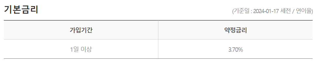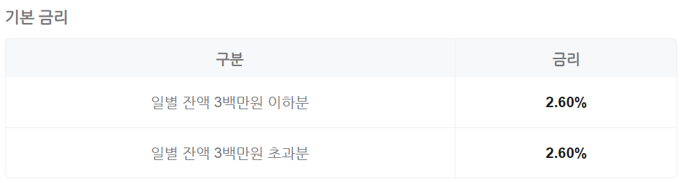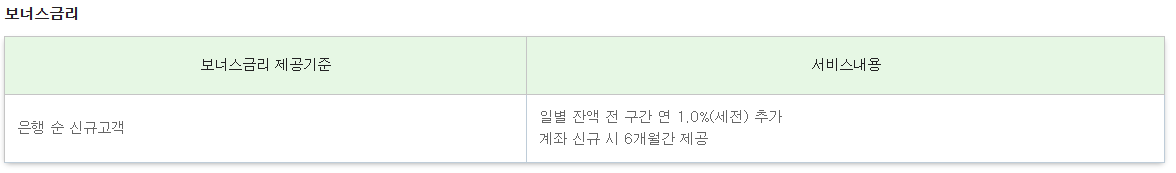 기본금리(연 0.10%)+우대금리(연2.90%)+이벤트 특별금리(연 1.00%)= 연 4.00% 제공