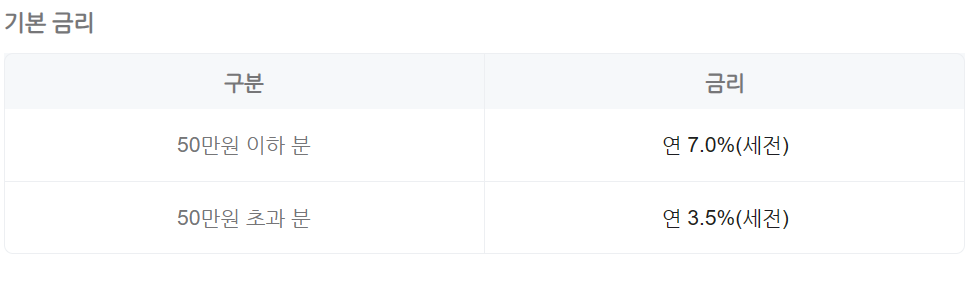 비과세혜택 : 비과세 종합저축으로 가입 가능 (전 금융기관 통합한도 범위 내)