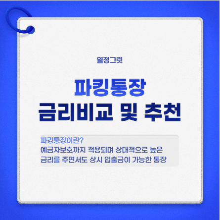 파킹통장 금리비교 및 추천(1금융권 파킹통장, 저축은행 파킹통장)