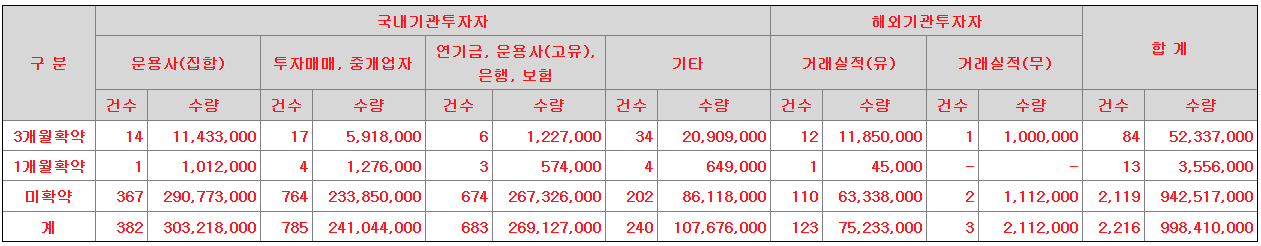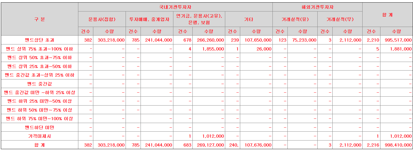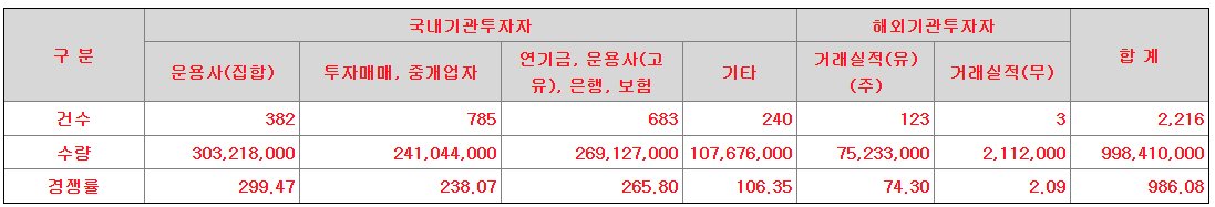 | 기관투자자 | 1,012,500주 | 75.0% | 22,275,000,000월 | (주 4), (주 5), (주 6) | |