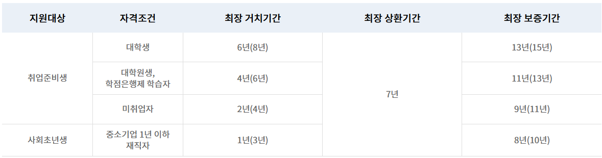 ※ 괄호 안은 군입대예정자(군필자, 면제자, 여성 제외)에 대한 추가 거치기간(2년) 부여 시 거치기간