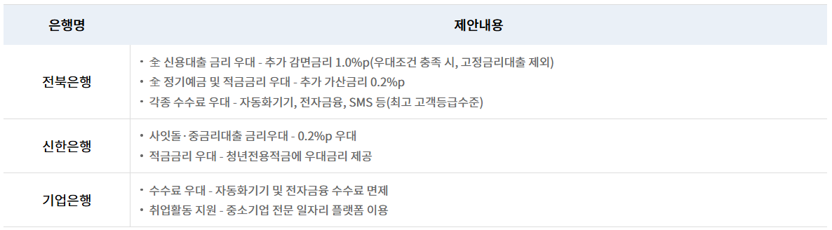 (IBK기업은행 ☎1566-2566, 신한은행 ☎1599-8000, 전북은행 ☎1588-4477)