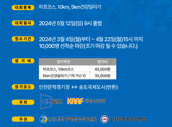 그중 오늘은 인천에서 개최되는 인천국제하프마라톤대회에 대해 소개하려고 합니다.