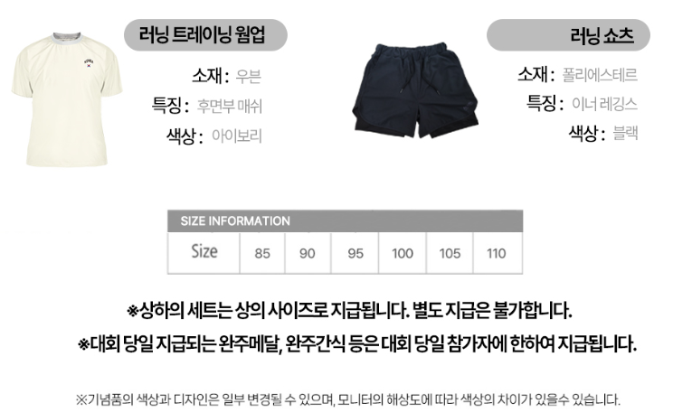 코리아 트레이닝 바람막이 웜업 상하의 세트, 완주메달, 배번호, 온라인 기록증, 완주 간식