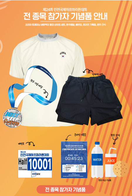 ※대회 당일 지급되는 완주메달, 완주간식 등은 대회 당일 참가자에 한하여 지급됩니다.