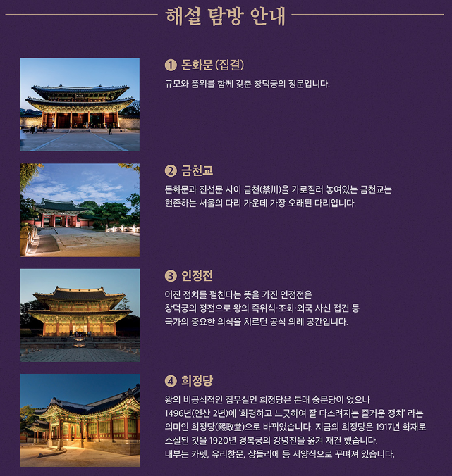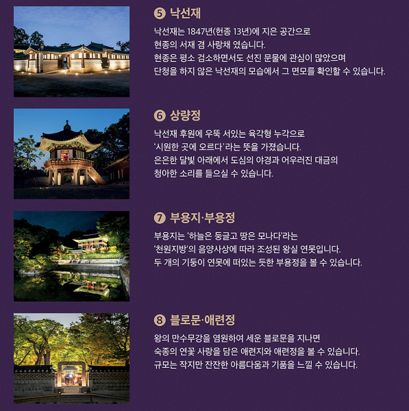 아름다운 창덕궁의 야경을 감사하실 수 있습니다.