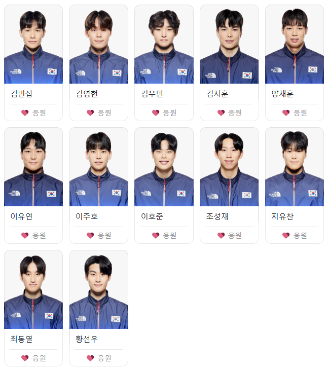 남자 수영 국가대표 :김민섭, 김영현, 김우민, 김지훈, 양재푼, 이유연, 이주호, 이호준, 조성재, 지유찬, 최동열, 황선우